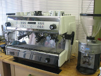 Although today's class was on coffee shop start-up, myself and another student from yesterday were asked to make drinks for the class, workshop leader and administrator. Only about 7 people in total. However, I ended up having to serve an espresso to the workshop leader. Now this guy, the very likeable Bill Herne, has practically every possible specialty coffee certification in the world. He's travelled to almost every good coffee producing country and has sampled some of the best and most expensive coffees in the world, including the US$100 per pound La Esmeralda from Panama. And as if that wasn't enough, he's a certified super taster- which means that he has a super sensitive and super sophisticated palate! I have to serve this guy espresso that I made after only 1 day of practice! Great! I was so nervous about his reaction to it that I asked him if it “looked okay” before I let him take the cup from my hand! Fortunately it did. He even showed me how the 'mottled' crema that I had produced was a good sign that the appropriate oils and flavours had been released. Mottled crema or tiger stripe crema- Good! Yaay me! :o)
